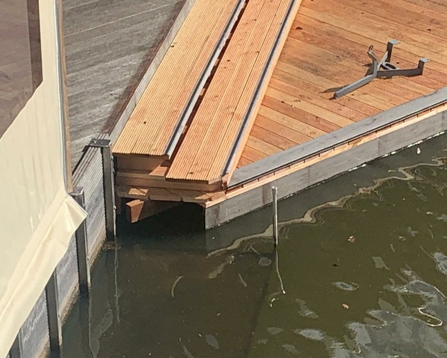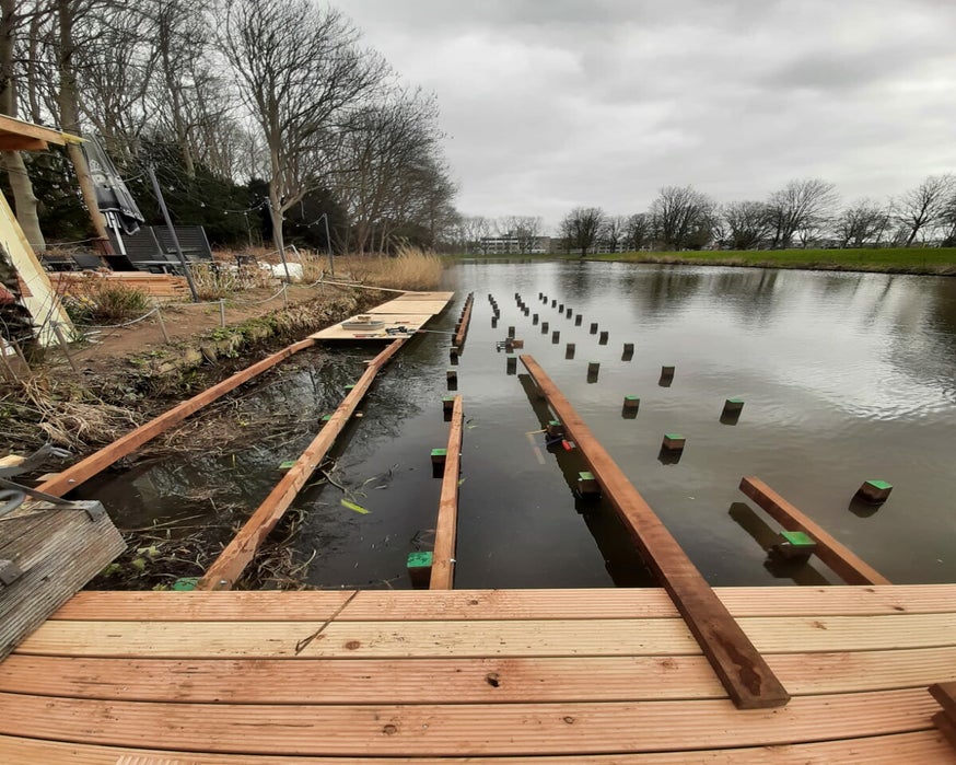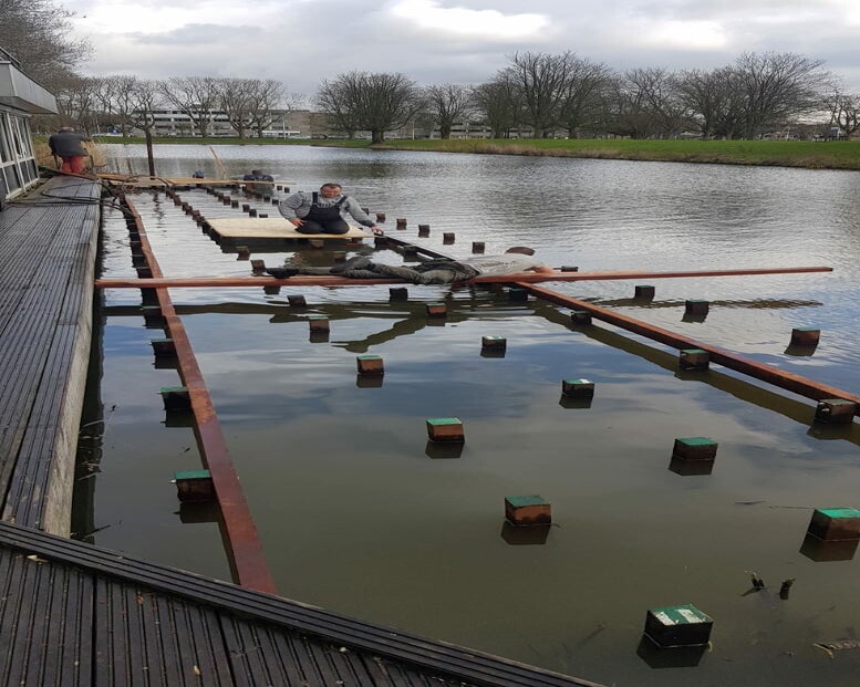 Vaarbassin van 14.40 meter lang, 7.20 meter breed en ca. 25 cm diep ( vaardiepte )